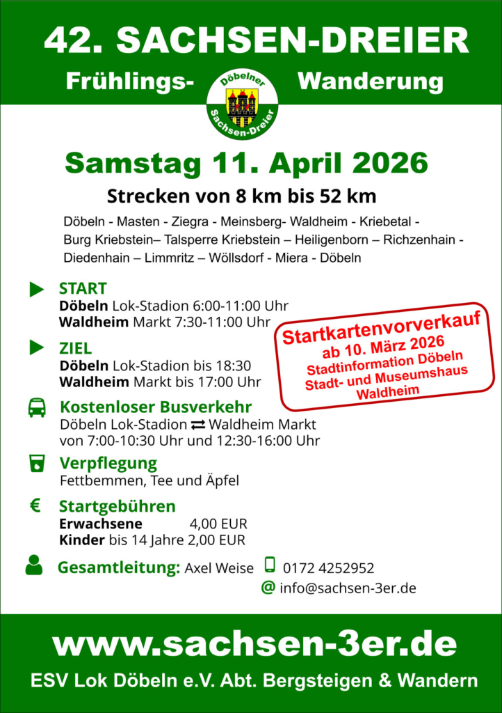 In der Stadtinformation Döbeln gibt es zum Preis von 4,00 EUR den Sächsischen Wanderkalender 2026.